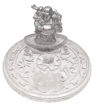 32-591 - Incensário Resina Redondo Cristal e Buda Prata 10cm