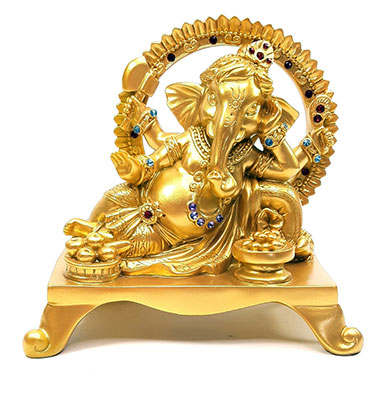 43-1445 - Ganesha Deitado - Dourado c/ Oferendas BR7264025